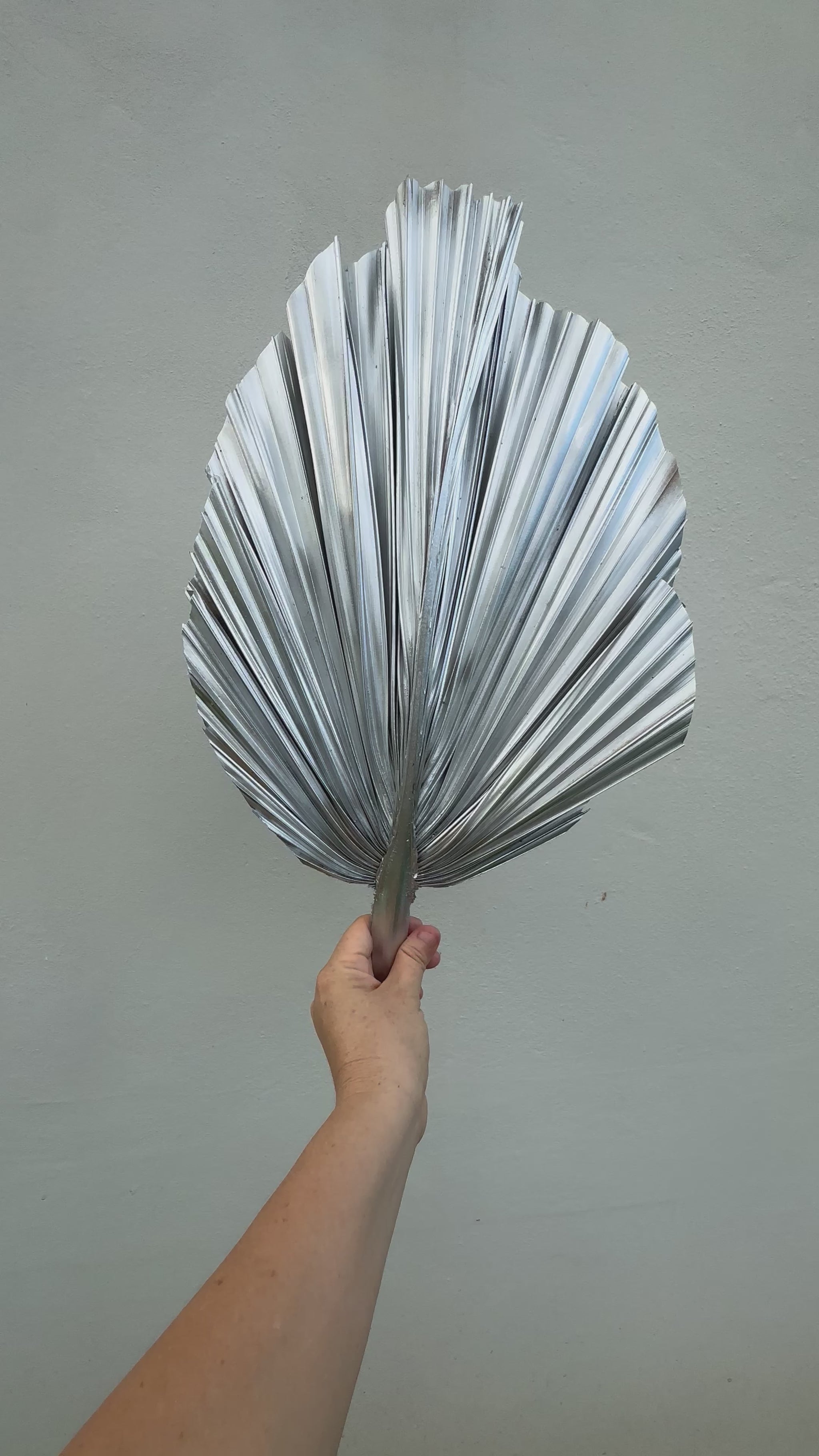 Includes 3 Palms: 12"W X 17"L Medium SILVER Dried Palm Leaf | Palm Fan | Tropical Decor | DIY Floral Arrangements | Home | Party | Wedding | Boho Decor | Free Ships Flat, Ready to Use! 3 PCS